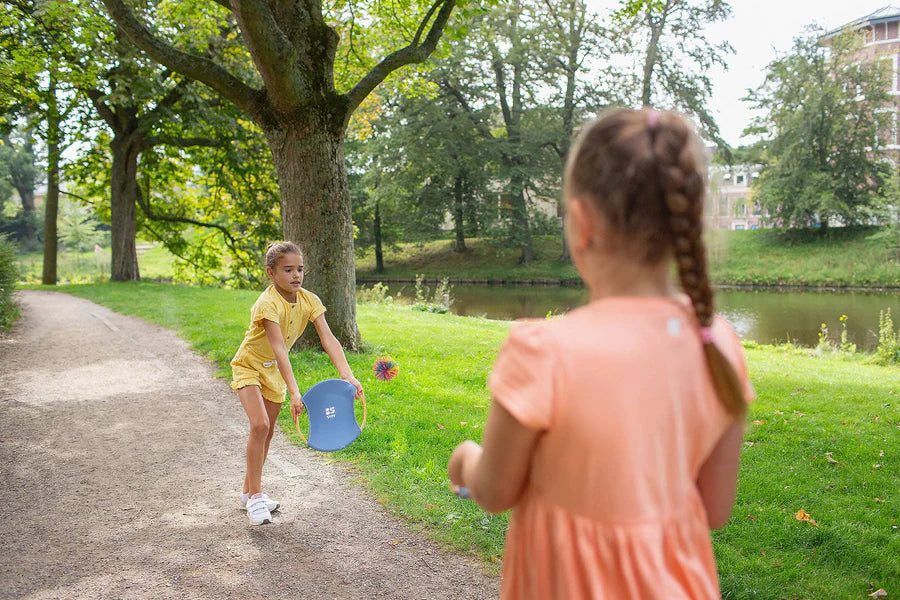 Crafted from bamboo along with stretchy fabric, the fluffy ball bounces cheerfully. This tennis set is perfect for young children, as these rackets can be held with both hands.