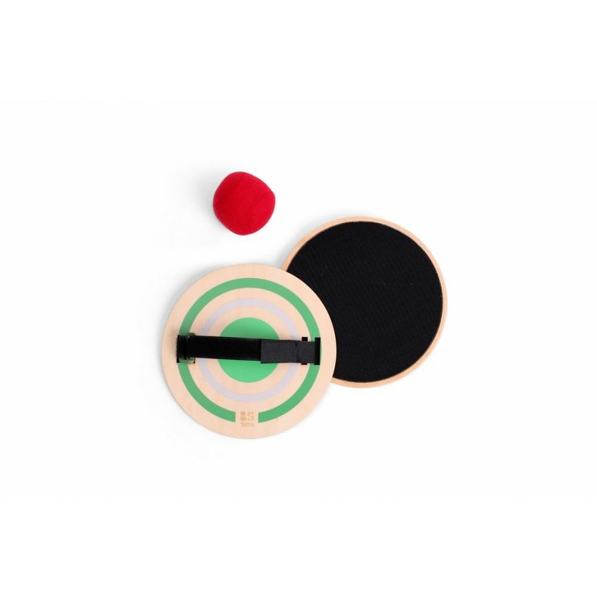 Discover our premium quality game with these two wooden round Velcro catchers and a soft ball. Enjoy hours of fun with this game set.