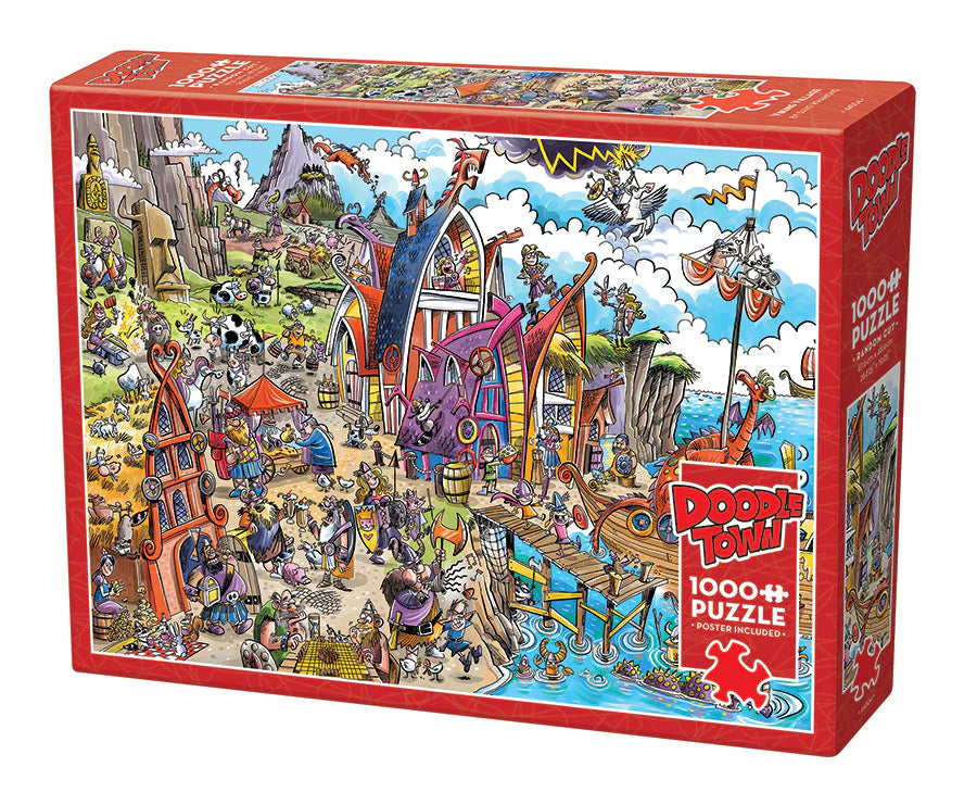 Doodle Town: Viking Village, 1000pc Puzzle, Compact