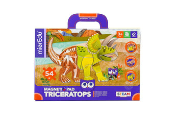 Designed for young Dinosaur enthusiasts to help them learn the basics of Triceratops. Construct the body and bones of the Triceratops magnetic puzzle, and learn about the Triceratops anatomy with the reference guide. Our mPad (magnetic pad) can replace the iPad and keep kids away from the screen. It can also be easily hung or placed on a stand, making it ideal for kids to play everywhere.