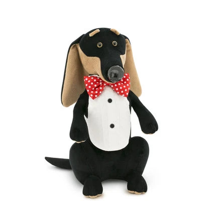 Meet Mozart the Dachshund. Mozart is the most musical of all the dogs you'll ever meet. From early childhood, he loved everything that had anything to do with music and already at 3 years old was quite good at playing the cello. Mozart's dream is to become a famous conductor of a large orchestra and travel around the world. It is good to have a dream, but in order for it to come true, it is necessary to work hard. For Mozart the Dachshund, every day starts with morning exercise and rehearsals before lunch. Today is a special day for him, the first solo concert. It is very exciting and pleasant. For such an important event, Mozart the Dachshund chose a snow-white dickey and a scarlet butterfly tie in a white polka-dot. It looks stylish and professional. We will sit in the front row! Good luck, Mozart!