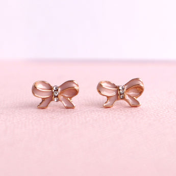 Pink Bow Earrings - Sterling Silver Post & Earnut