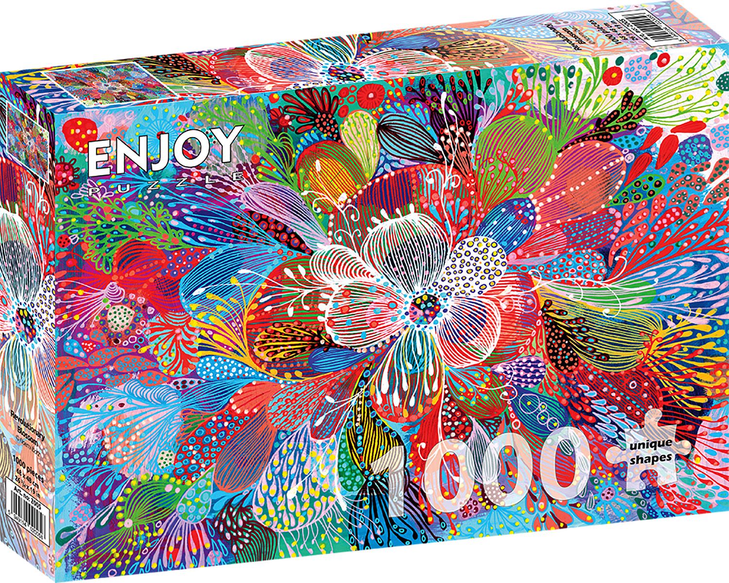 Discover the brand Enjoy Puzzle: a beautiful selection of high-quality jigsaw puzzles that are a joy to assemble. Thick, high-quality pieces fit together perfectly, attractive colours and a semi-matte finish shine, and the packaging is environmentally friendly. A broad range of images includes several rainbow gradient visuals for fans of colours. Also included are lovely, colourful illustrations and paintings, as well as beautiful landscapes (views of New York and many others). Enjoy a good time with Enjoy puzzles! Compact Box: 33.3 x 23.3 x 4.7cm Dimensions: 68 x 48cm