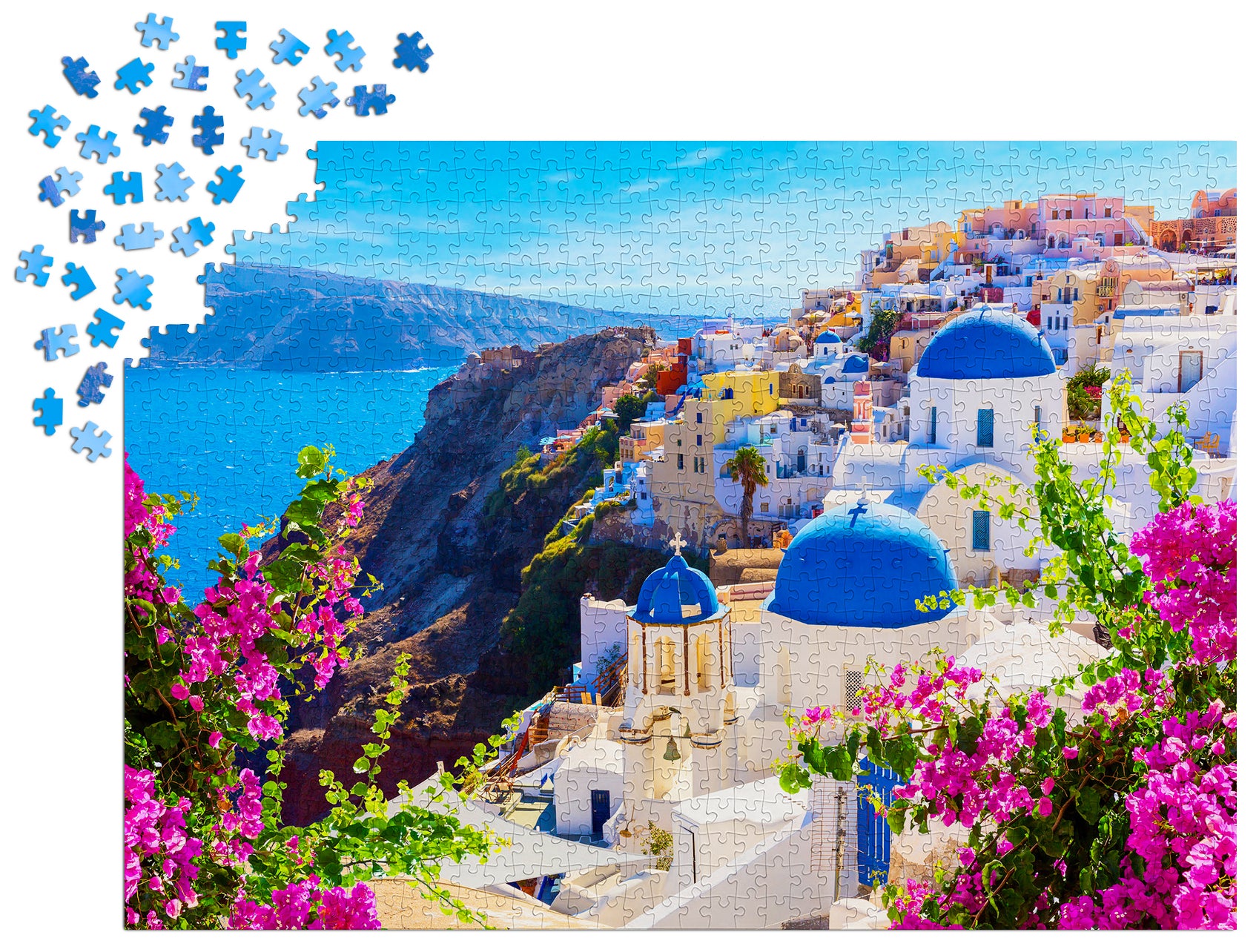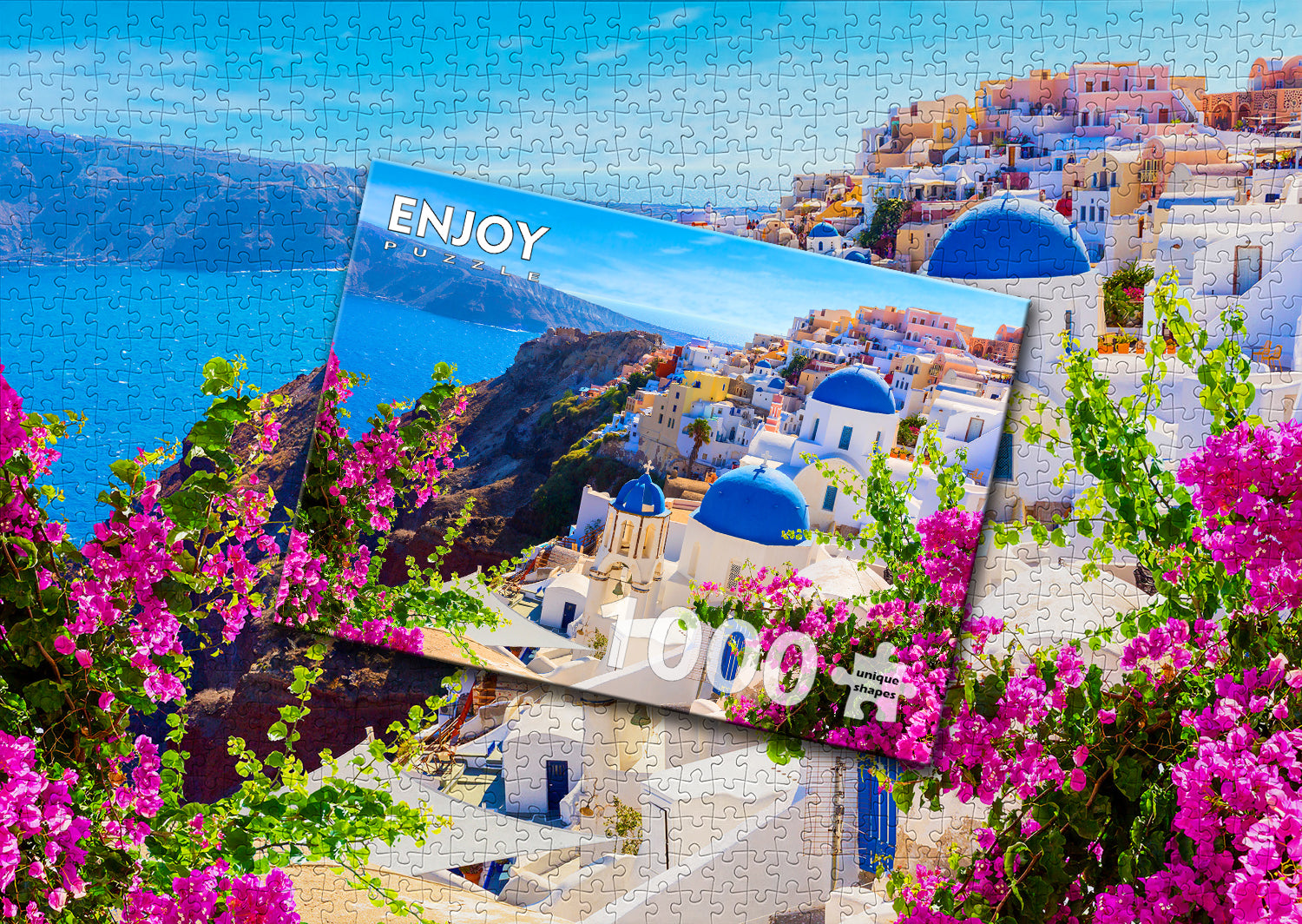 Santorini View with Flowers, Greece, 1000pcs