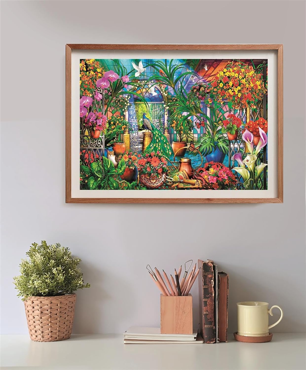 500 Pieces, The Greenhouse Caretakers, Compact Box, Puzzle for Adults, 14-99 Years, Made in Italy. Comes with a full-sized poster. The finished puzzle measures 49 x 36cm.